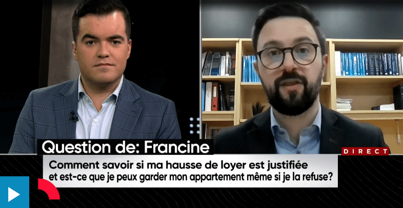 Entrevue à l’émission À vos affaires sur LCN pour parler des droits des locataires dans le cadre d’une hausse de loyer.